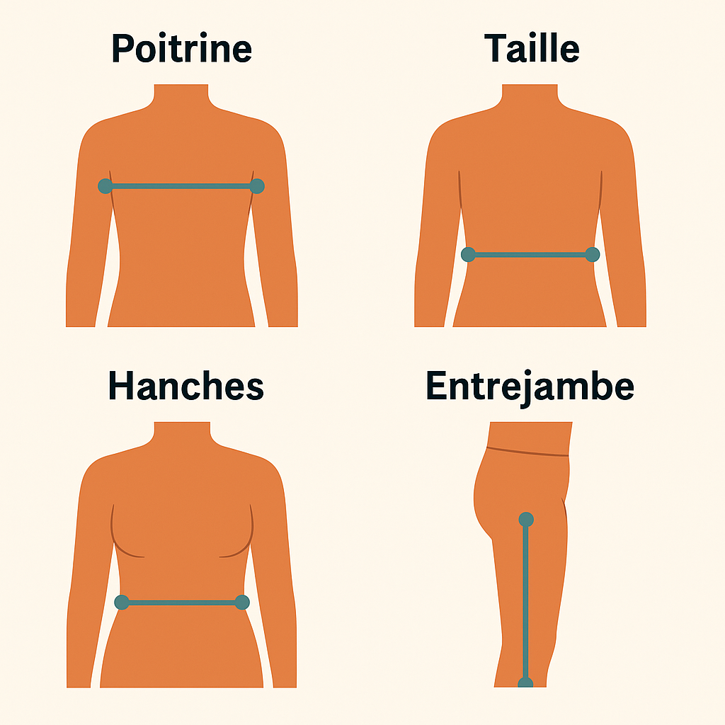 | Taille FR | Poitrine (cm) | Taille (cm) | Hanches (cm) |